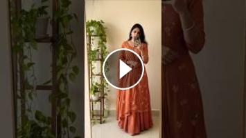 A beautiful young women taking a mirror selfie indoors, soft natural lighting, wearing matching rustic orange embroidered traditional outfits. The girl is wearing a rustic orange dupatta delicate floral embroidery, holding a smartphone. Clean background with a smooth beige wall. Calm romantic expression, cinematic soft focus, pastel, without changing her face exactly same as reference photo,she looks slim and young,add some real hanging mony plants in wooden stand in side of the mirror