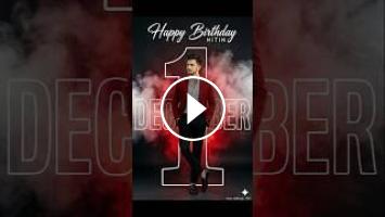 He is wearing a sharp red blazer layered over a crisp white shirt, casually unbuttoned at the top. He has fitted black trousers and polished black loafers, completing a classy, modern, and fashionable look. At the top, white script text "Happy Birthday" and smaller white text "NITIN". A large, white outline number "1" dominates the background behind me. A large, white outline number "DECEMBER" dominates the background position below 1. white "@np_edithub_1001" logo bottom right. Dramatic studio lighting. 8k resolution. make sure face is 100% match, no light on face, natural face, Behind 1 Strong red and white smoke effect.