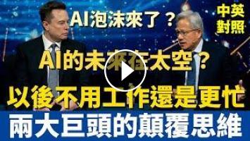 馬斯克(Elon Musk)與黃仁勳(Jensen Huang)分享他們對 AI 泡沫、AI 基礎設施、人形機器人、AI 衛星、未來科技、能源需求 的最新看法。