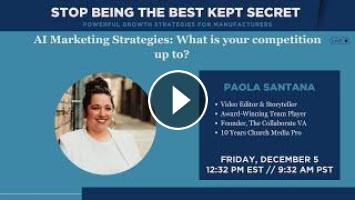 Join us for this Stop Being the Best Kept Secret episode as we explore “AI Marketing Strategies for Manufacturers: What Is Your Competition Up To?” with video marketing expert and creative strategist Paola Santana.
