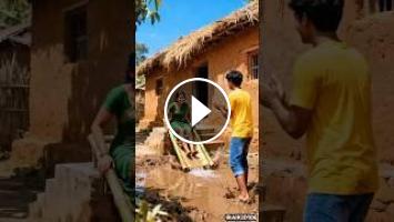 cute child rescues woman and builds ice water slide for her #ai #baby #save...