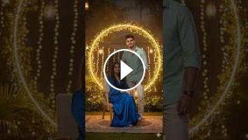 Ultra-realistic, 8K cinematic full-body portrait of a beautiful young Indian couples A woman (using the uploaded face reference for an exact match), sitting casually on a modern chair in a beautifully decorated outdoor setup at night A Man wears A pastel soft green shirt and cream pant and white sneakers. The background is dominated by a large, glowing neon ring wrapped in green vines and sparkling with colorful fairy lights, creating a vibrant, festive, and magical atmosphere