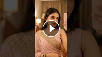 2. My Face should be Same in this Ultra-realistic portrait of a young Indian woman taking a selfie indoors, wearing a soft pastel pink saree with heavy golden embroidery and sequins, sleeveless matching blouse, elegant traditional look.