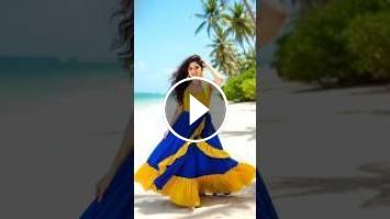 Use my upload inage with 100% same face, 8k ulra hd day light portrait of a slim young girl wearing tropical printed colorful wrape dress , long flower design earing, her dark brown hair style in loose curls, she is wearing light makeup with bold kajal and eyliner matte lipstick, long multicolor earing , standing gracefully under the coconut trees in the beach with romantic atmosphere, she is looking to the camera with smile and styling her hairs flow in air. Blue water sea .