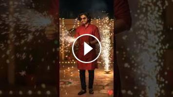 Diwali fireworks (patakhe), sparks flying dynamically in slow-motion around him.,