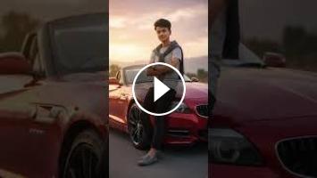 Ultra-realistic cinematic portrait of a confident man sitting in the driver's seat of a red BMW Z4 convertible, captured at golden hour. The mood embodies freedom, success, and refined modern elegance.