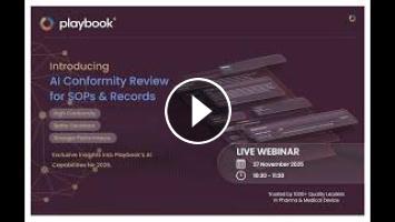 In this webinar, we introduce the AI Conformity Reviewer, a new Playbook capability that helps Quality teams compare SOPs and process documents against defined Gold Standards.