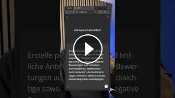Hier ist der Prompt: "Erstelle professionelle und höfliche Antwortvorlagen für Bewertungen auf [Google]. Berücksichtige sowohl positive wie negative Bewertungen und formuliere wertschätzende, kundenorientierte Antworten, die Verständnis zeigen, Vertrauen stärken und das Markenbild positiv widerspiegeln."