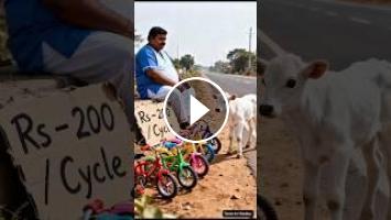 The cow's calf steals a small bicycle for his friend. #ai #animals #shorts