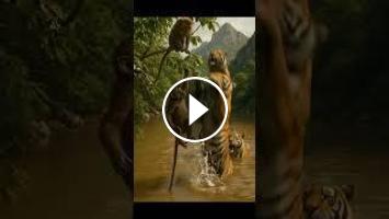 This content was created with artificial intelligence.” #WildEscape#TigerVsMonkey #NatureDrama