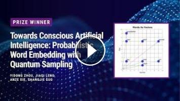 Team lead Shangjie Guo presented their essay Towards Conscious Artificial Intelligence: Probabilistic Word Embedding with Quantum Sampling. The full team includes Yidong Zhou, Jiaqi Leng, and Anze Xie.