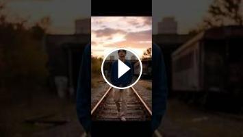 create by using 100% same face Cinematic 8k wide-angle low-angle shot: young man in a royal blue open-collar oversized shirt, beige cargo pants, low-top sneakers, and a gold chain, with tousled hair, walking on an abandoned railway track at golden hour, hands in pockets, background bokeh, abandoned tunnel, train coach, trees, dramatic sky, distant urban horizon, rich natural color, grading, soft golden light, and a mood of solitude and journey, closer view.