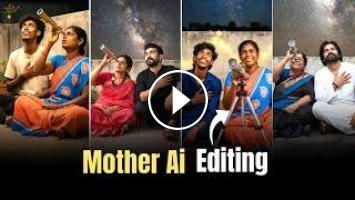 Use the two picture me and my mother A deeply emotional shot of a of sharing a moment of wonder. We are sitting on the ground against a concrete wall at night on home terrace.my mother, wearing a saree, same dress looks up through a small handheld object like a telescope towards sky . And I sits next to her, gazing upwards with his hand on his chest, same dress with scandals The atmosphere is heartwarming and poignant, with soft, dramatic lighting with HD camera effect with original face