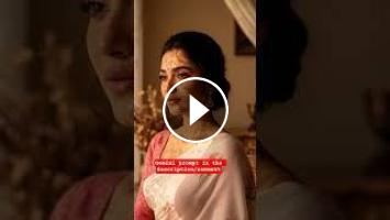 Create a dreamy, close-up portrait where warm sunlight filters through lace or floral cutouts, casting magical patterns on the skin. She is in an aesthetic room. Her makeup is soft and romantic, and her expression is gentle, almost enchanted. Her hair is swept back in a delicate bun, and the shadows move as if telling a story. Dressed in white sari with pink flower print and fitted pink sleeves blouse