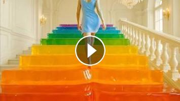 Ascend into tranquility on staircases made of dreams. ✨ This AI ASMR journey features impossible steps crafted from surprising and satisfying materials: vibrant jelly stairs ????, crusty toast steps ????, wobbly pudding landings ????, iridescent bubble pathways ✨, airy cloud stairs ☁️, and melty cheese slopes ????!