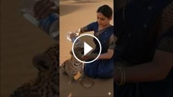 women feeds a leopard cub and waters a coconut tree #ai #tree #save #baby